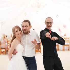 Хочу поблагодарить отличного ведущего, который отлично провел свадьбу наших друзей, бешеная энергетика исходила от Макси...ма с самого начала праздника. Отличный ведущий